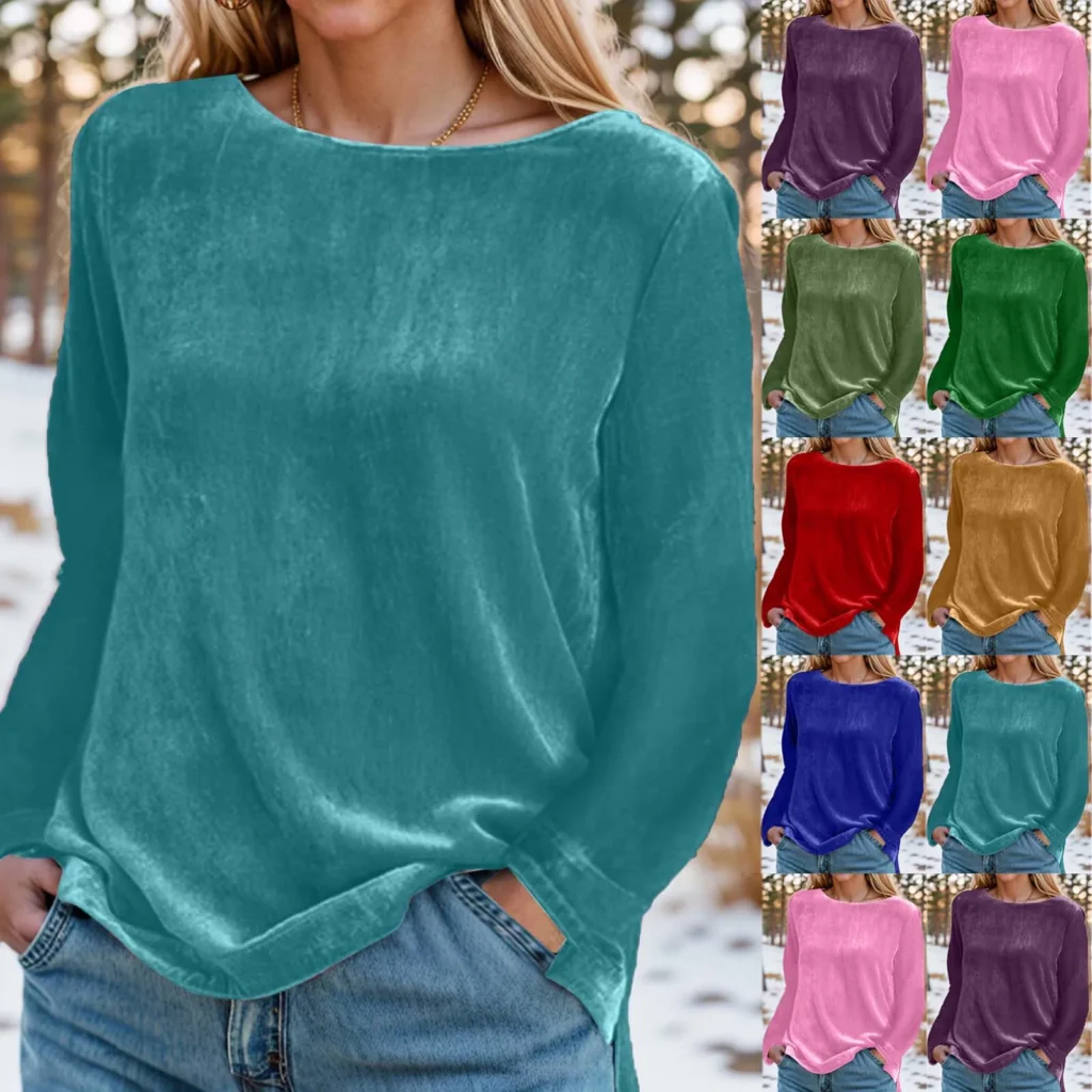 T-Shirts For Women Cotton Women Casual Fashion Solid Color Round Neck Pullover Velvet Top Autumn And Ropa De Mujer Ofertas
