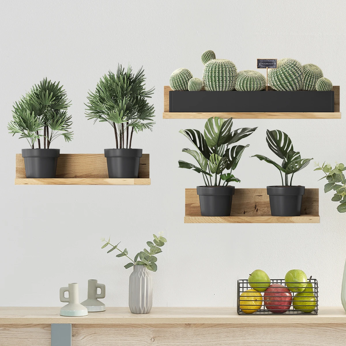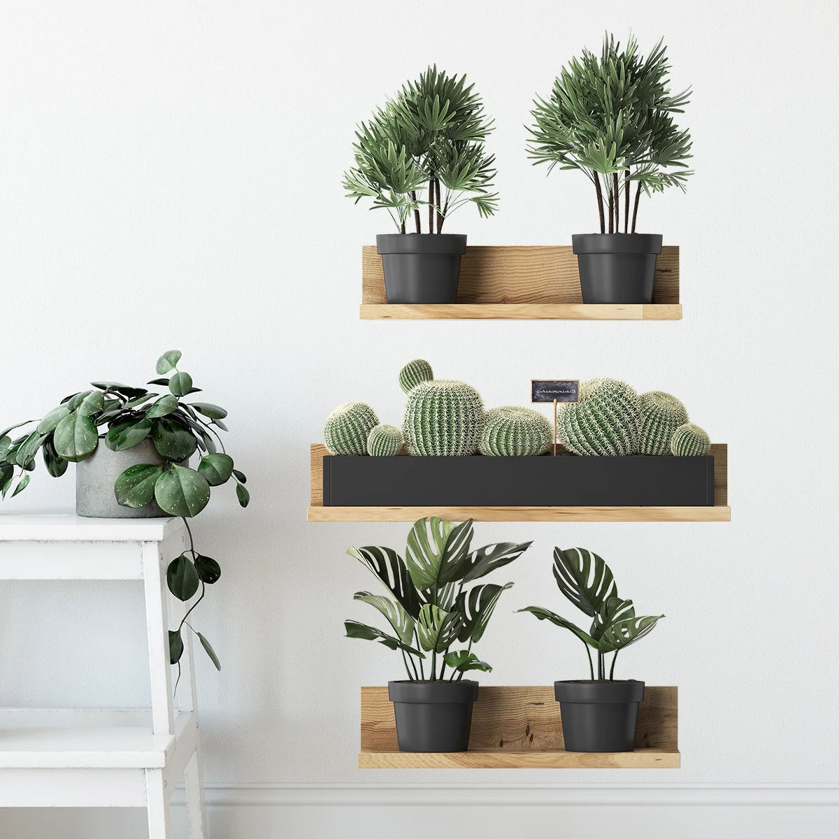 3PCS Green Plant Cactus Potted Wall Stickers for Bedroom Living Room Bathroom Home Decoartion Wall Decals