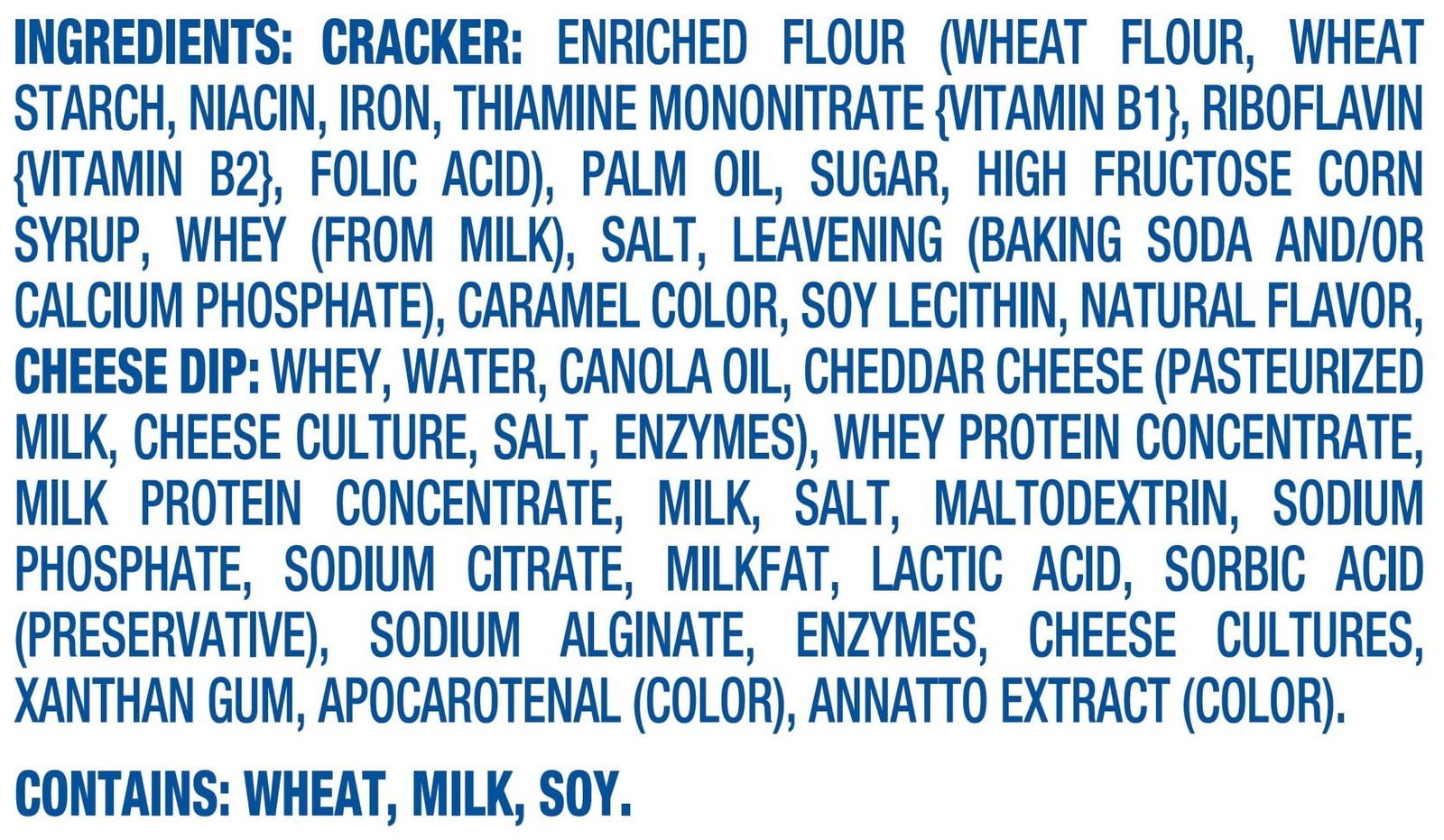 • This includes twelve 0.95oz packs of Handi Snacks Ritz Crackers n Cheese Dip.