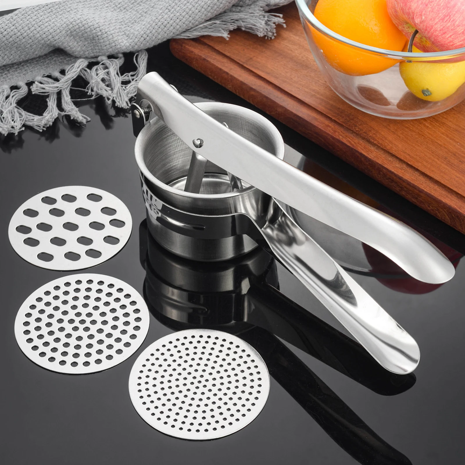 Potato Ricer Stainless Steel with 3 Interchangeable Fineness Discs, Ricer Kitchen Tool for Mashed Potatoe